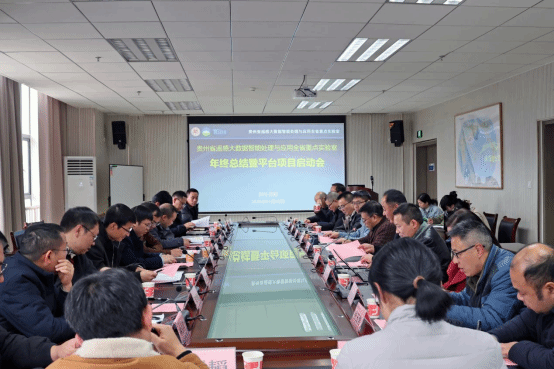 2026年1月20日下午,“贵州省遥感大数据智能处理与应用全省重点实验室”年终总结暨“贵州地质灾害早期精准识别与智能预警关键技术研究”平台项目启动会在贵州师范大学西校区喀斯特研究院四楼会议室顺利召开。会议由实验室常务副主任杨广斌教授主持,参加会议的有实验室主任周忠发教授,副主任朱大运教授、黄勇董事长,以及各研究方向负责人、实验室主要成员、平台项目课题负责人与课题组主要成员参加了会议。